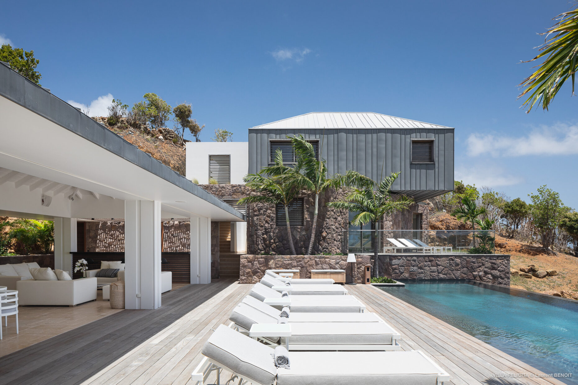 They say a picture is worth a thousand words, but the true scale, light, and luxury of Villa Felicita must be seen to be believed. Browse our photo gallery to take a virtual tour of this Jean-Michel Wilmotte masterpiece. From the glimmering waters of the 15-meter infinity pool to the sleek, white-washed lines of the living spaces, discover why Felicita is the most sought-after new rental in Lorient.